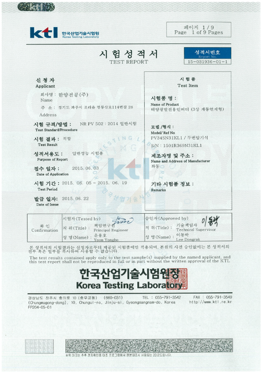 한양전공(주)의 시험성적서를 확인하실 수 있습니다.