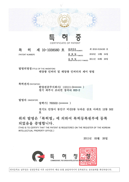 신재생에너지 특허증
